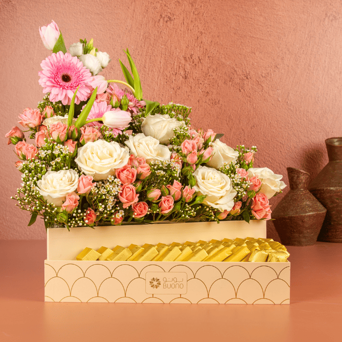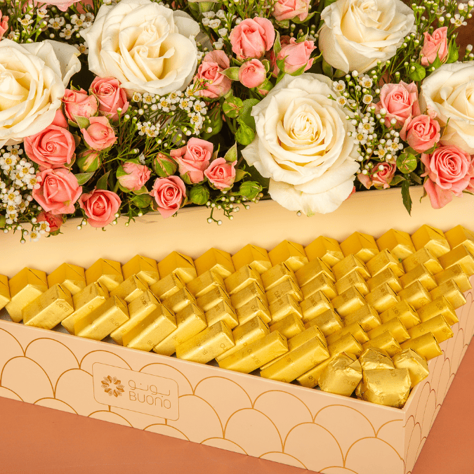 صينية هدايا هيلسايد الفاخرة، تصميم متكامل يجمع بين جمال الورود الطبيعية المنتقاة وأناقة 1.1 كجم من الشوكولاتة المغلفة الأرقى. مثالية لتقديم هدية شوكولاتة بالورود راقية في كل المناسبات. اطلب بوكس الهدايا المميز هذا للتعبير عن مشاعرك بذوق لا يُنسى.