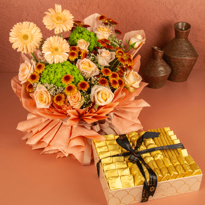 توليفة هدايا متكاملة ومثالية! يجمع هذا العرض بين جمال باقة زهور طبيعية فائقة الروعة وأناقة بوكس الهدايا الكلاسيكي الصغير. يحتوي بوكس الهدايا على 1.3 كجم من أفخر أنواع الشوكولاتة المغلفة وأجودها. إنه الخيار الأمثل لتقديم هدية متكاملة وراقية تناسب جميع المناسبات الخاصة. اطلب الآن بوكس شوكولاتة بالورود واستمتع بتقديم هدية لا تُنسى.