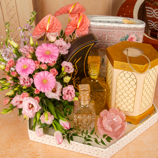 احتفوا بروحانية رمضان مع نقصة روح ، الهدية الرمضانية الغنية والمعبرة، المنسقة بعناية على صينية سداسية بتصميم رمضاني.