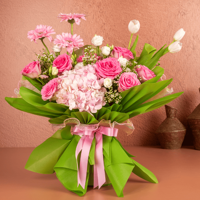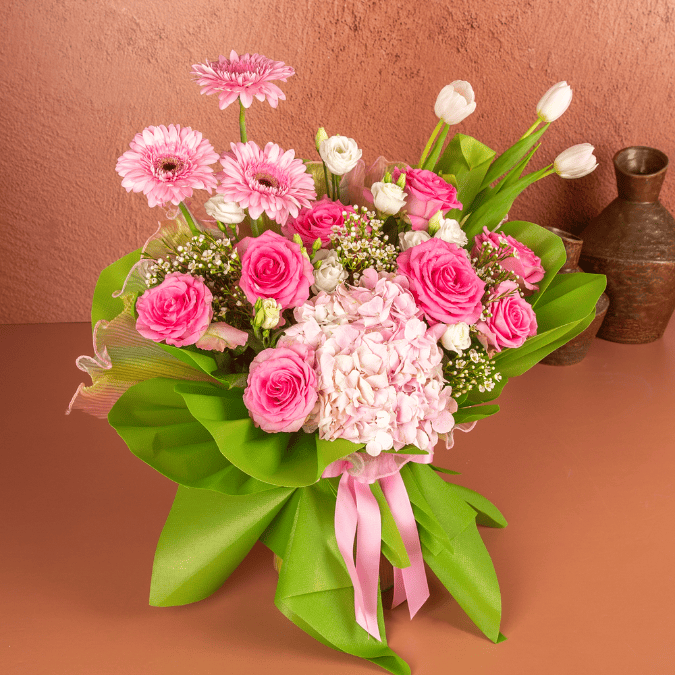 باقة زهور فيرتوسا النابضة بالحياة والساحرة! تصميم لافت للنظر يجمع بين جمال الورود الطبيعية بألوان الوردي الفاتح والأبيض النقي. مثالية لإضفاء لمسة من الرومانسية والأناقة. اطلب الآن باقة زهور وردي وأبيض لتكون هدية مثالية تعبر عن مشاعرك بكل رقة وجمال.