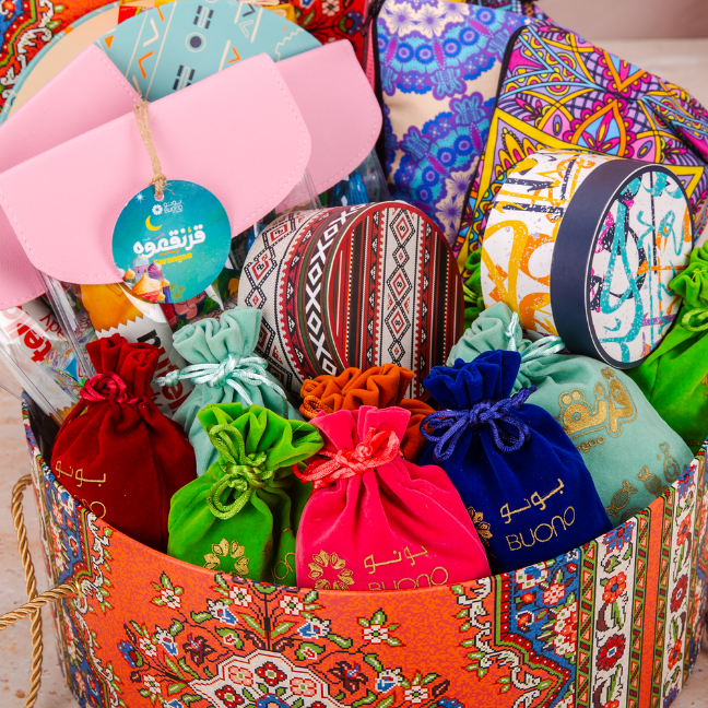 10 velvet pouches, 1 Life is Sweet curva, 1 Souq curva, 3 portfoliage packs, 3 PVC pouches, 1 Garangoa ribbon bag, 2 large bubble toys.