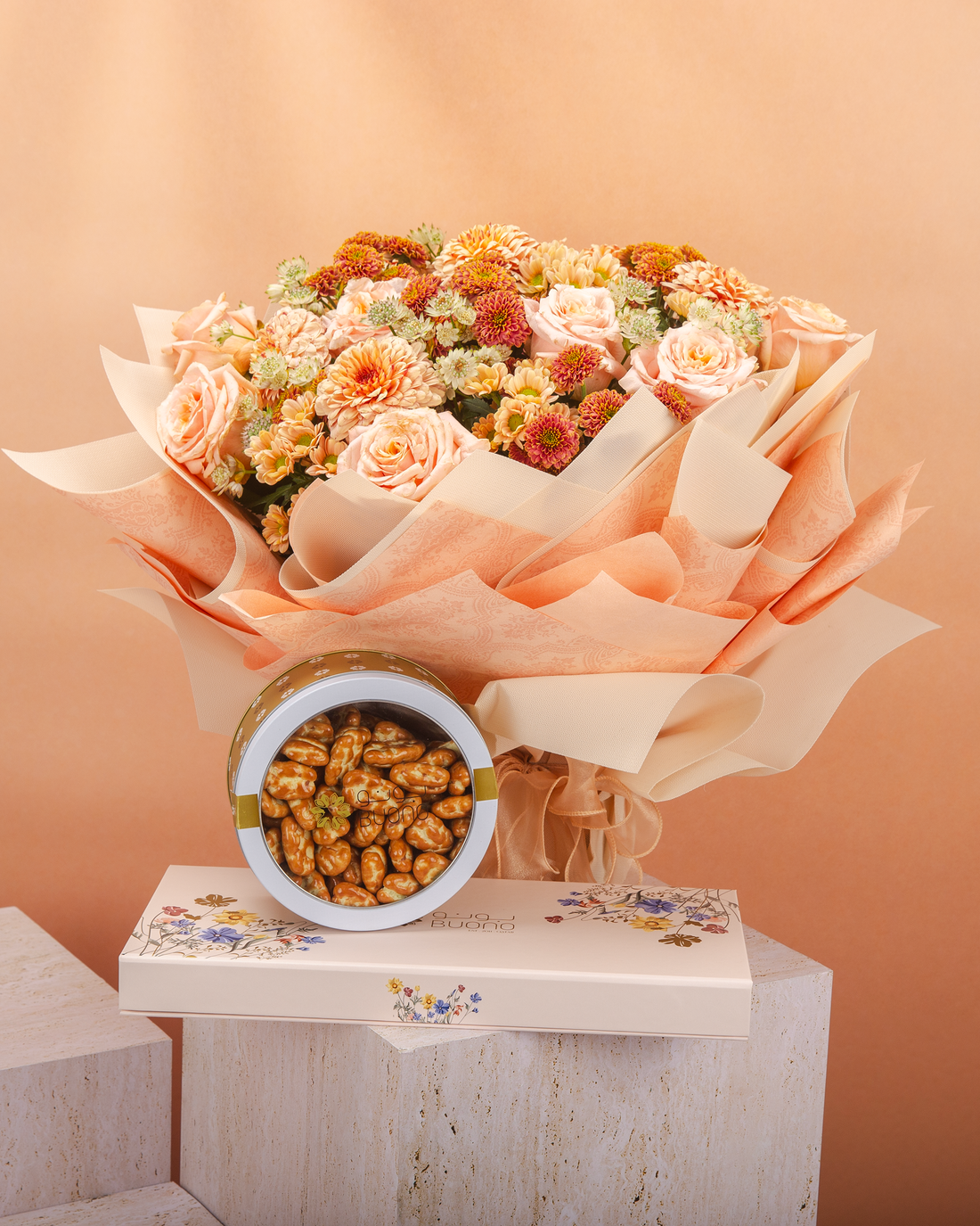 Pair your favorite Buono chocolates with fresh, elegant flowers, the sweetest way to say it all.